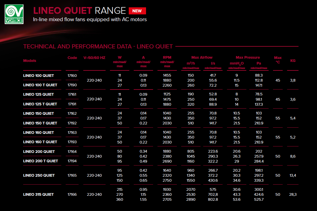 Yeni Lineo Quiet serisi ürünler, konutlar, ticari veya endüstriyel tesislerin havalandırılması için kanal hattında yatay veya dikey kurulum için özel olarak tasarlanmış çalışma sırasında motor ve hava sesi en aza indirgemek için tasarlanmış akustik gövdesi ile kanal tipi sessiz karma akışlı fanlardır.
